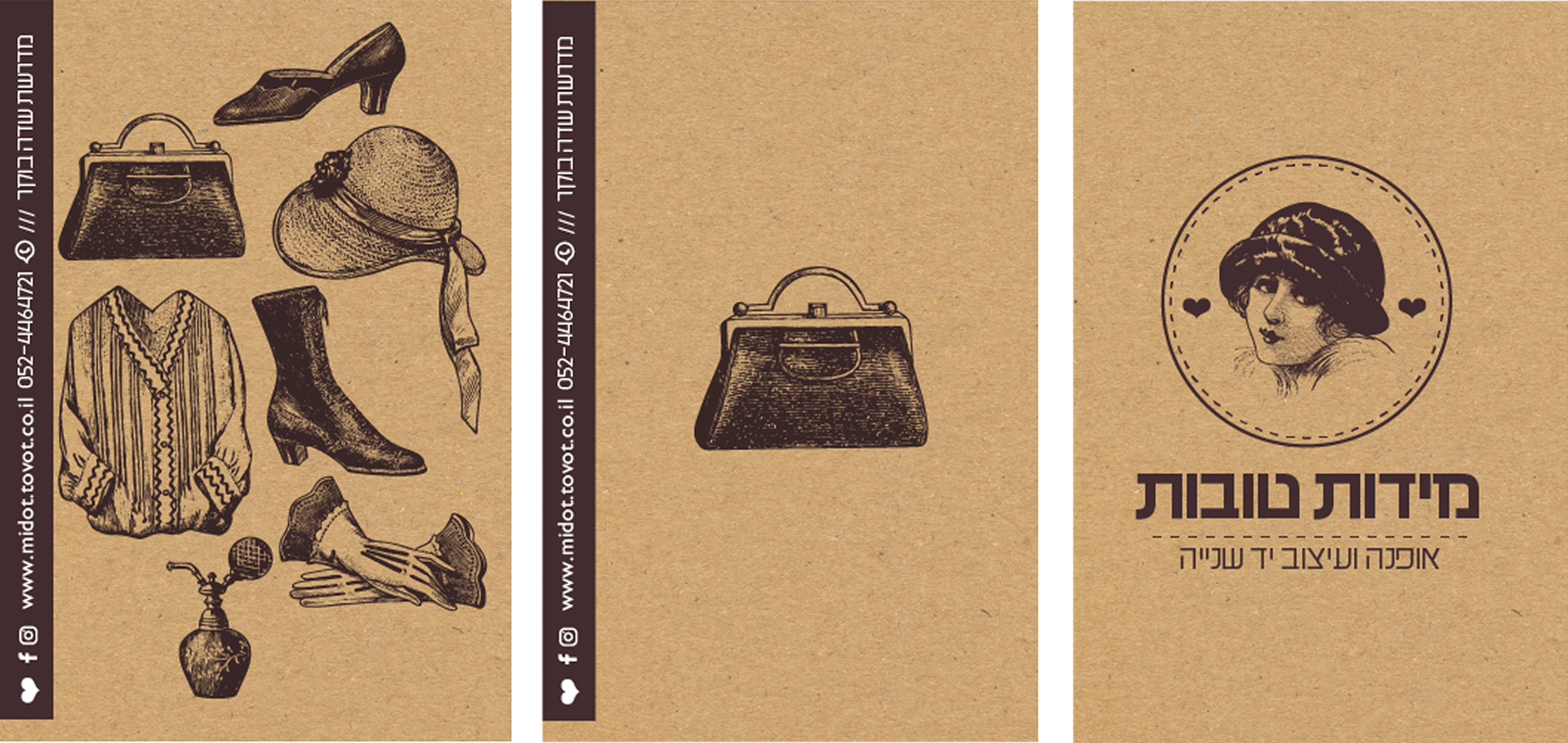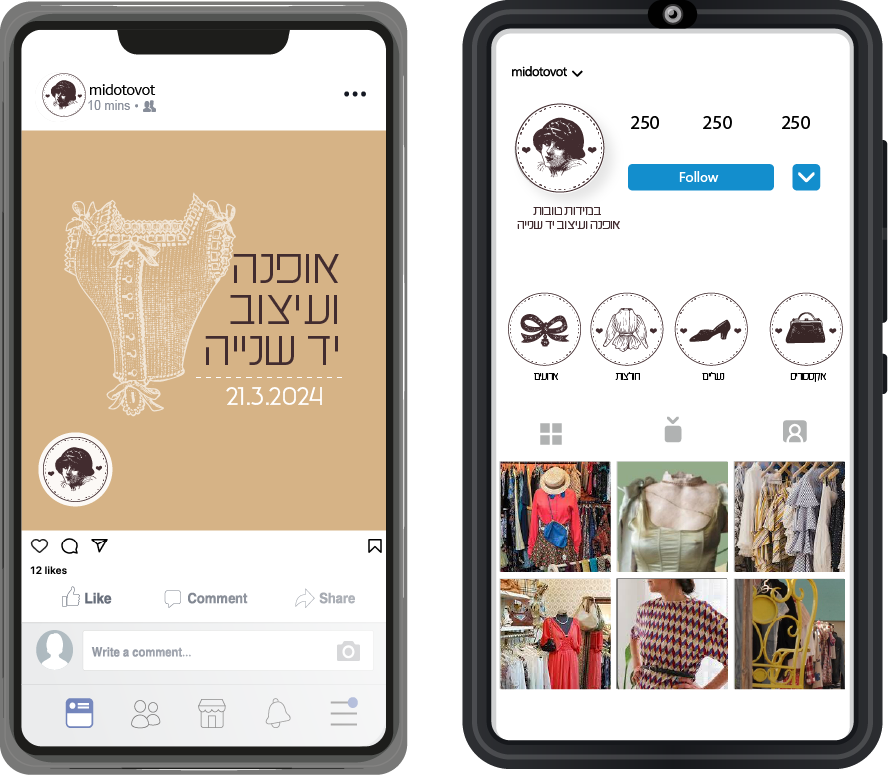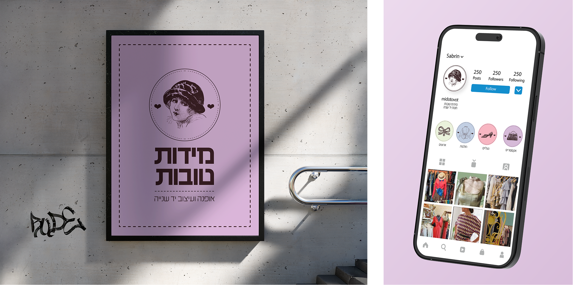 המיתוג יוצר חוויה ויזואלית שמחברת בין עולם האופנה הקלאסי לבין חנות יד-שנייה עם אופי.